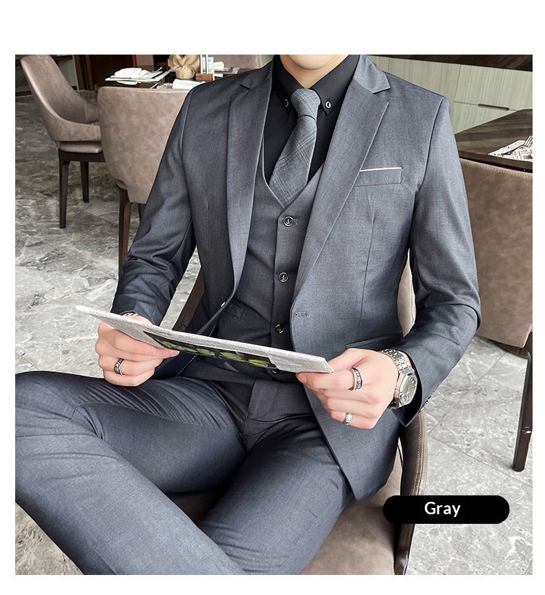 Mens Casual British-Style Slim-Fit Suit Set