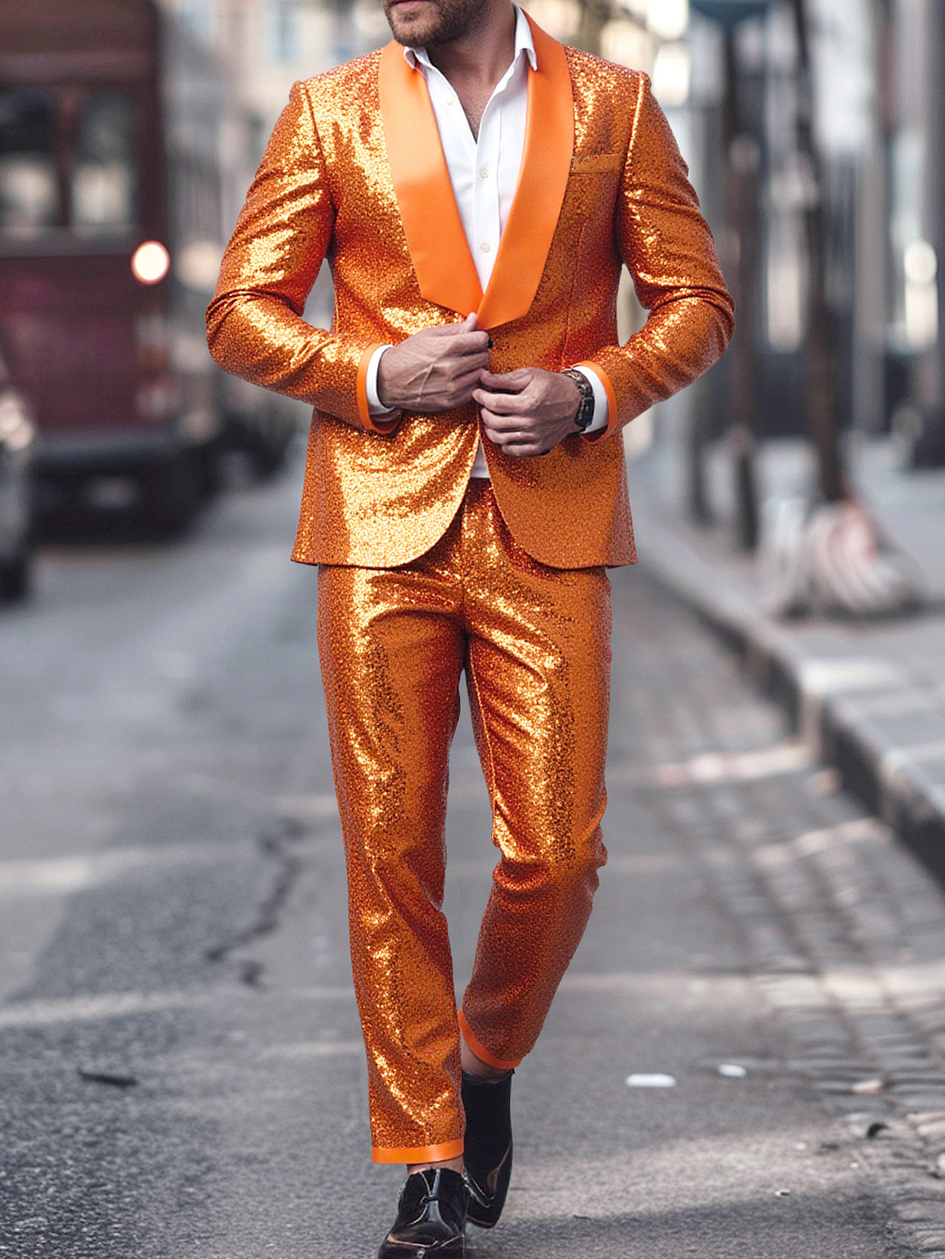 Men's New Foreign Trade Orange Banquet Stage Two-piece Suit