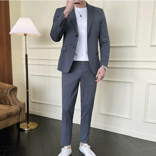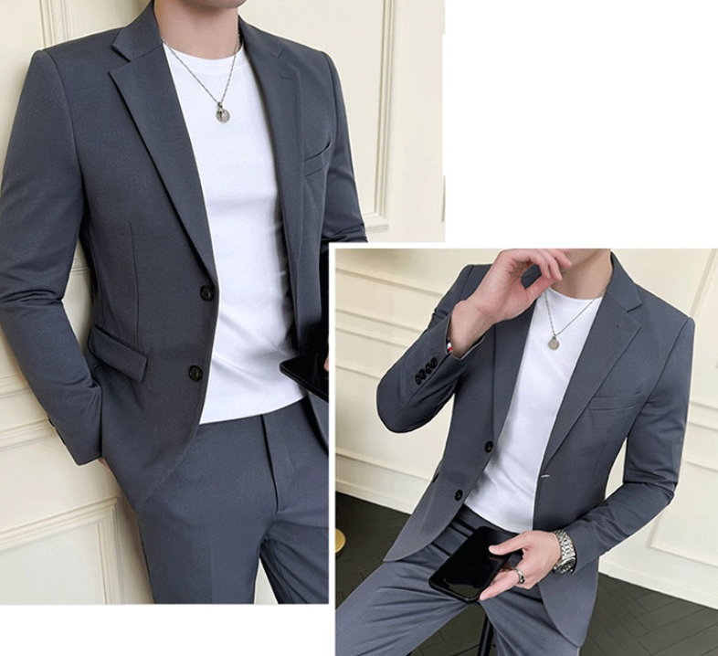 Men's Slim-fit Casual Semi-formal Suit Two-piece Set