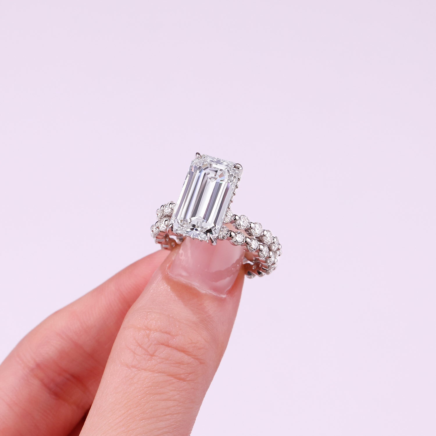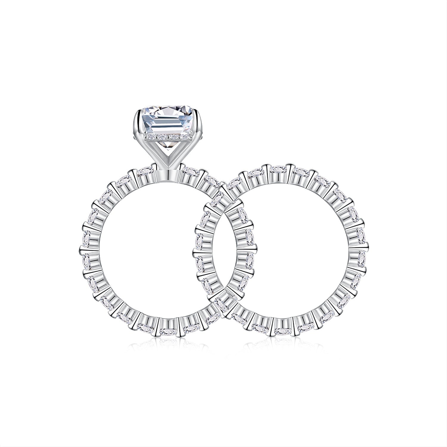 Octagonal Moissanite Double Rings Set With Top-quality Moissanite Luxury, Fashionable And Light Luxury Jewelry Silver Ring S925 Silver Plating Platinum