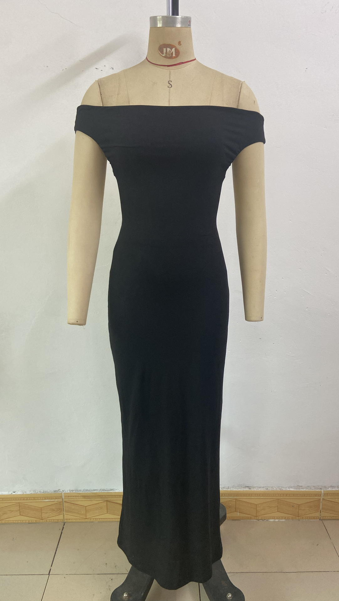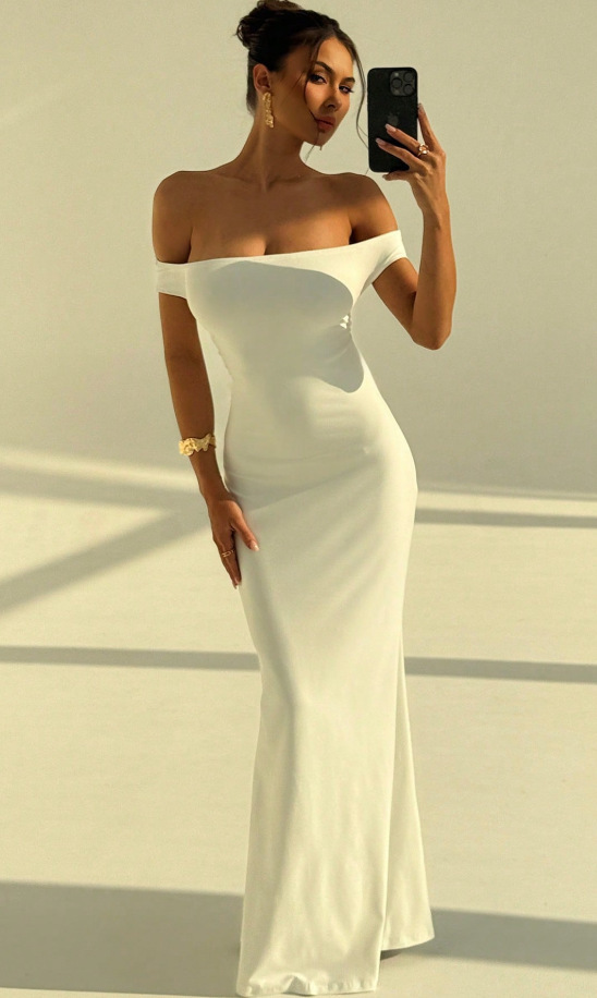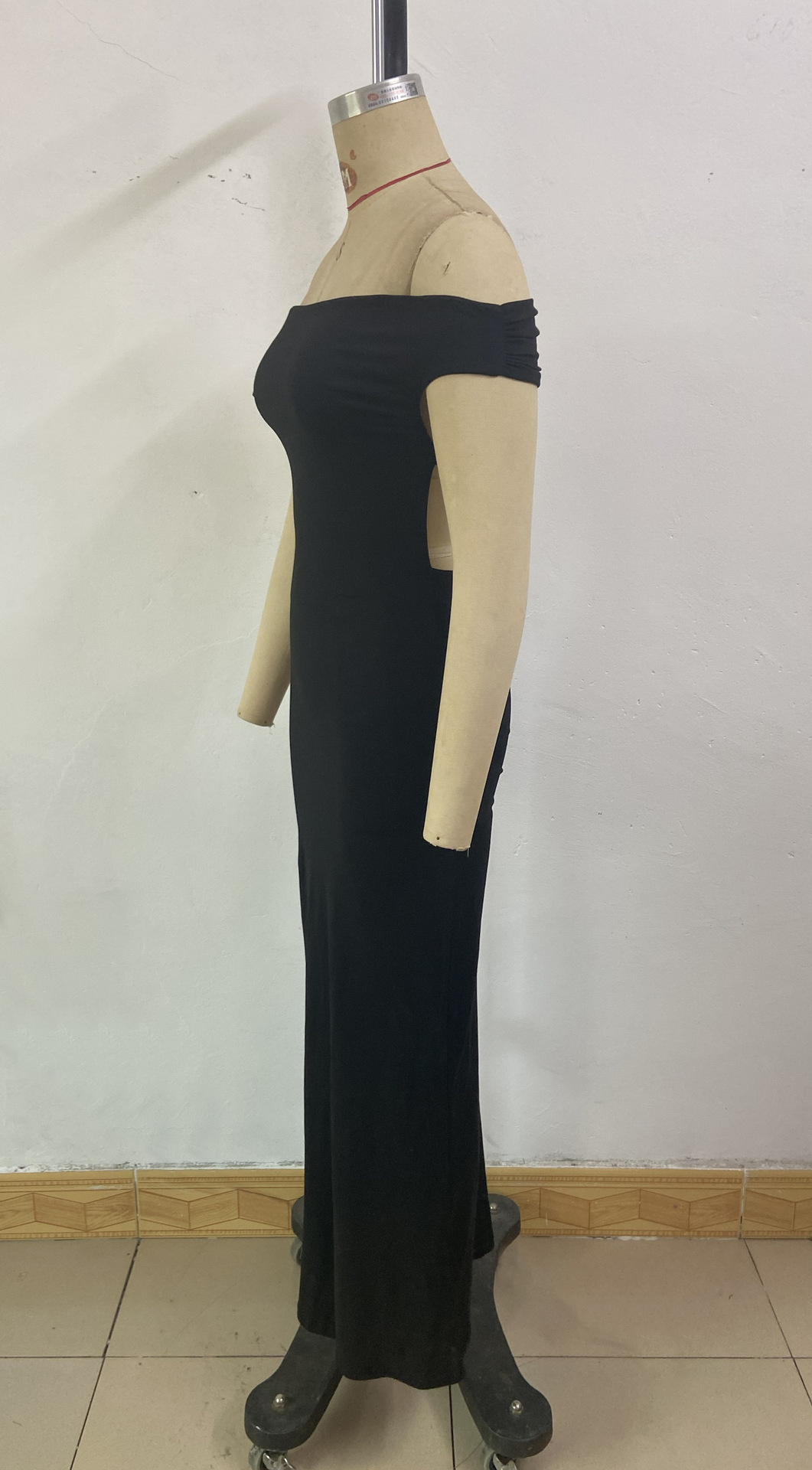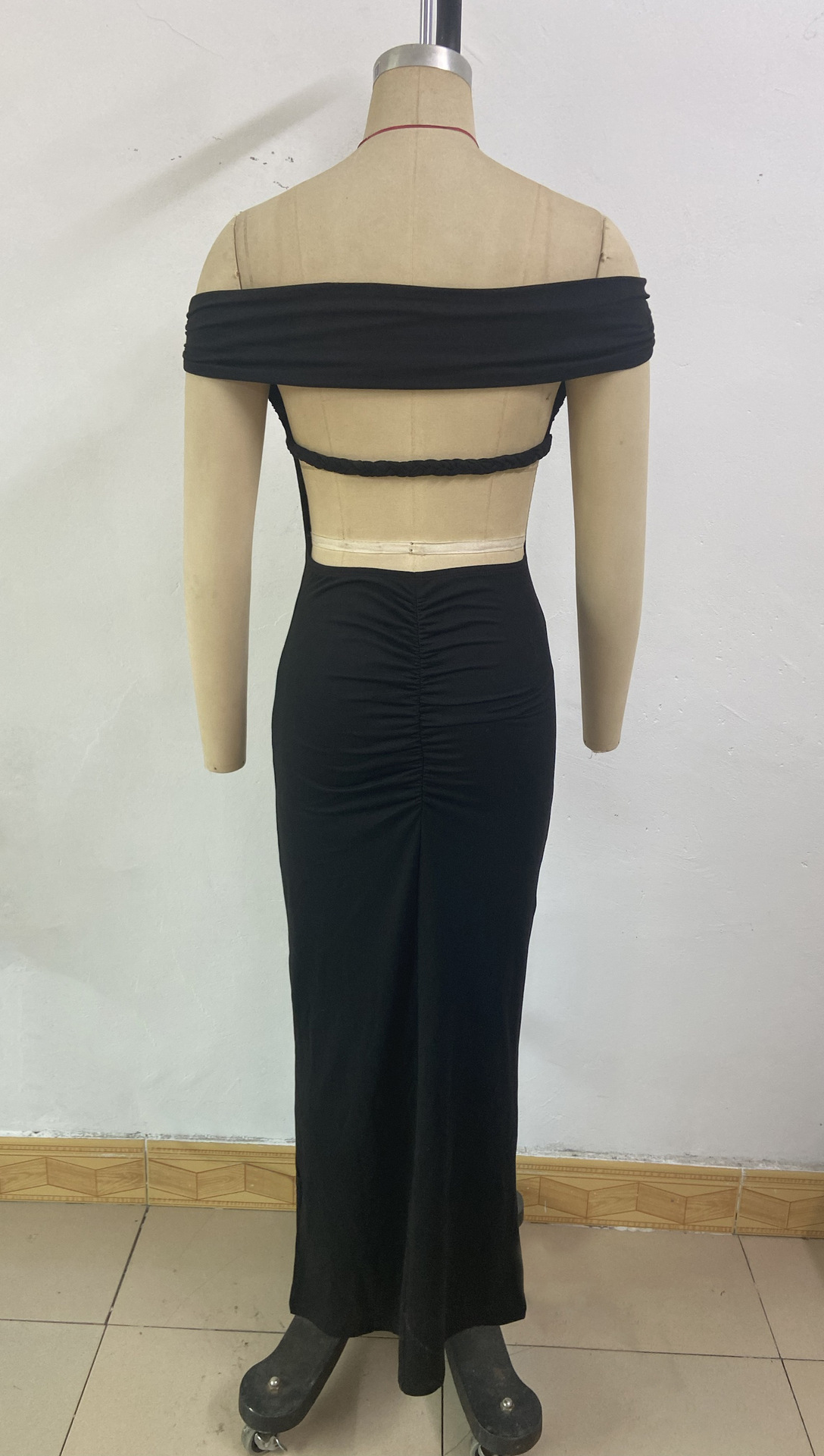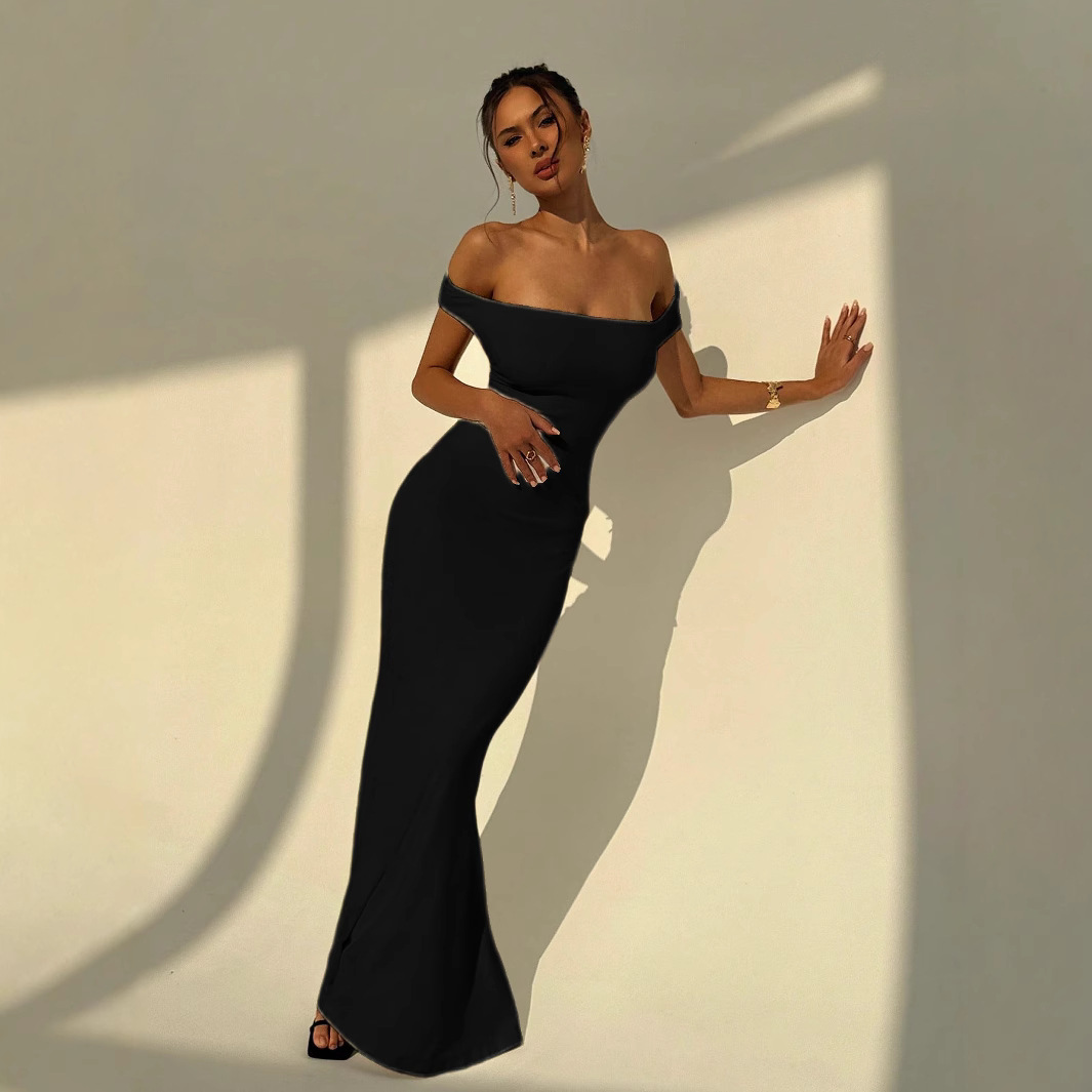 Off-the-Shoulder Backless Dress Waist-Cinching Long