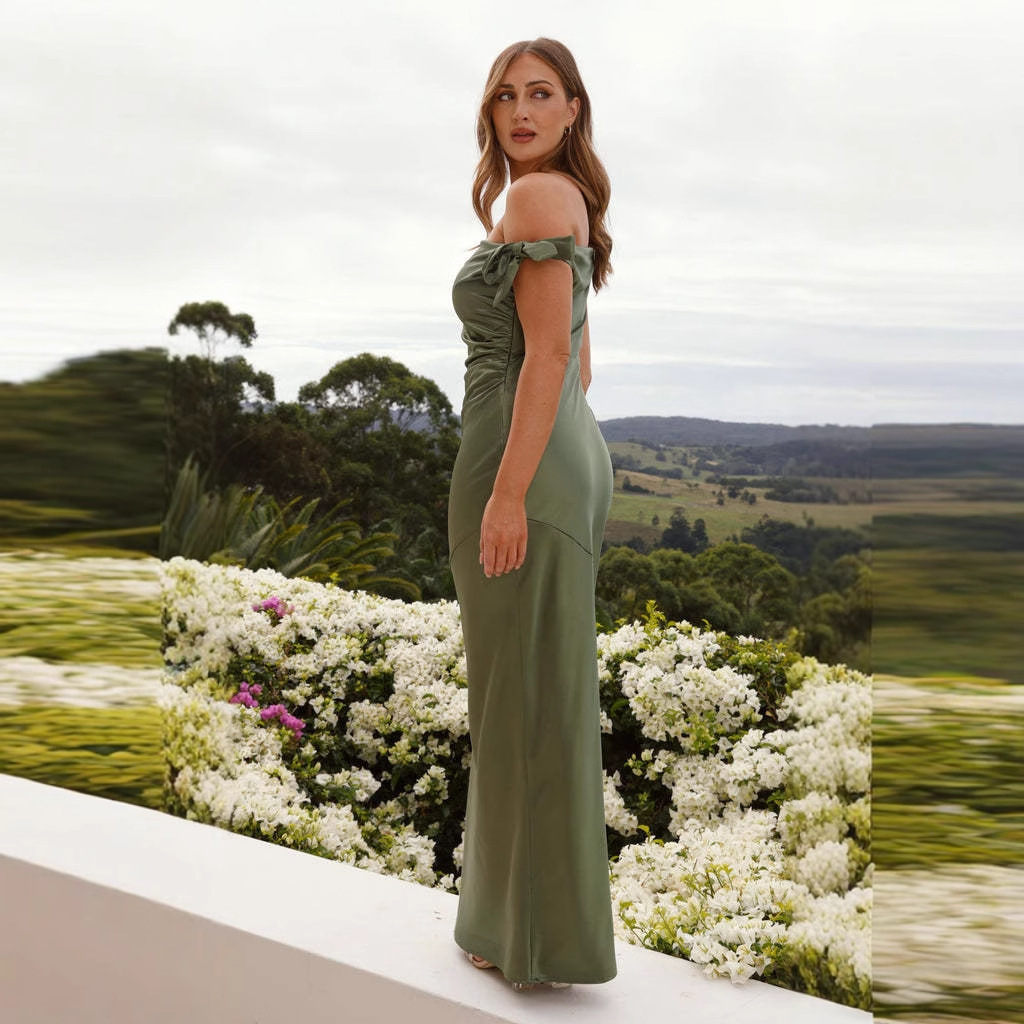 Off-the-shoulder Halter-neck Stretchy Form-fitting Bodycon Dress With Tie Details