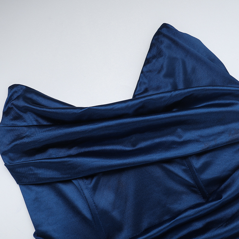 Womens Deep-V Waist-Cinching Satin Split Dress