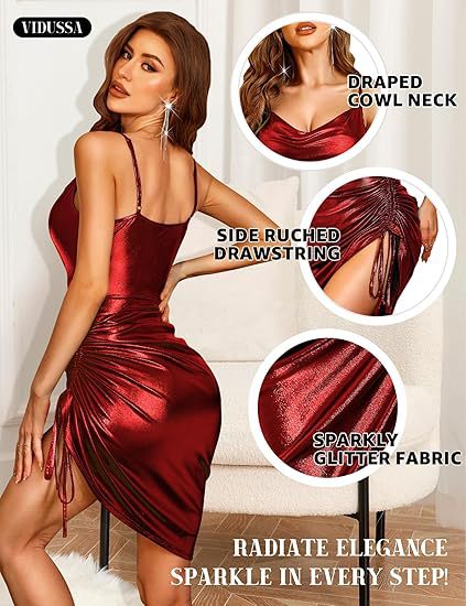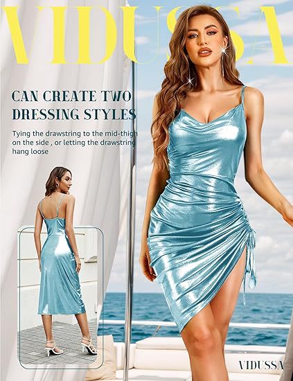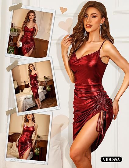 Womens Shiny Ruffled Bodycon Midi Dress